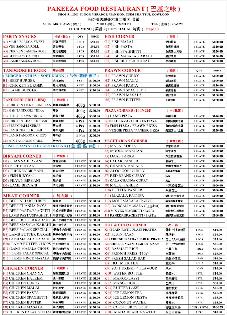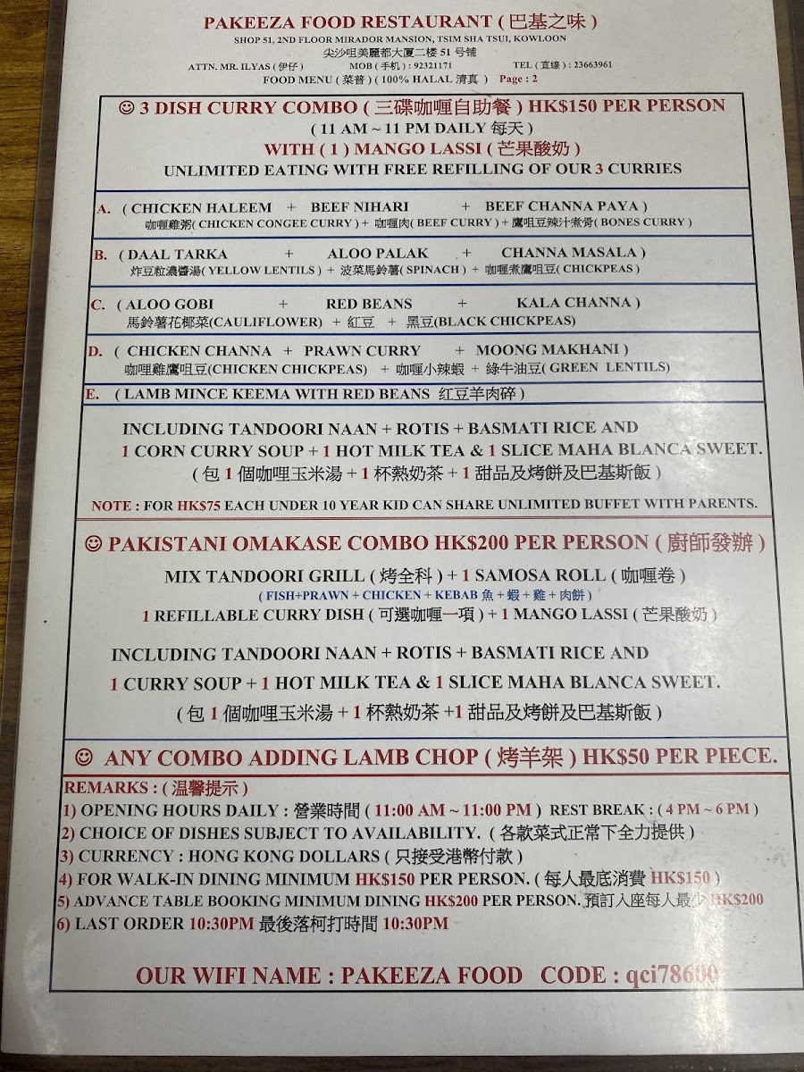 Welcome to Pakeeza Food Restaurant, a hidden gem nestled on the 2nd floor of Mirador Mansion, Tsim Sha Tsui. Renowned for its authentic Indian and Pakistani cuisine, Pakeeza offers a delightful culinary experience that exceeds expectations.